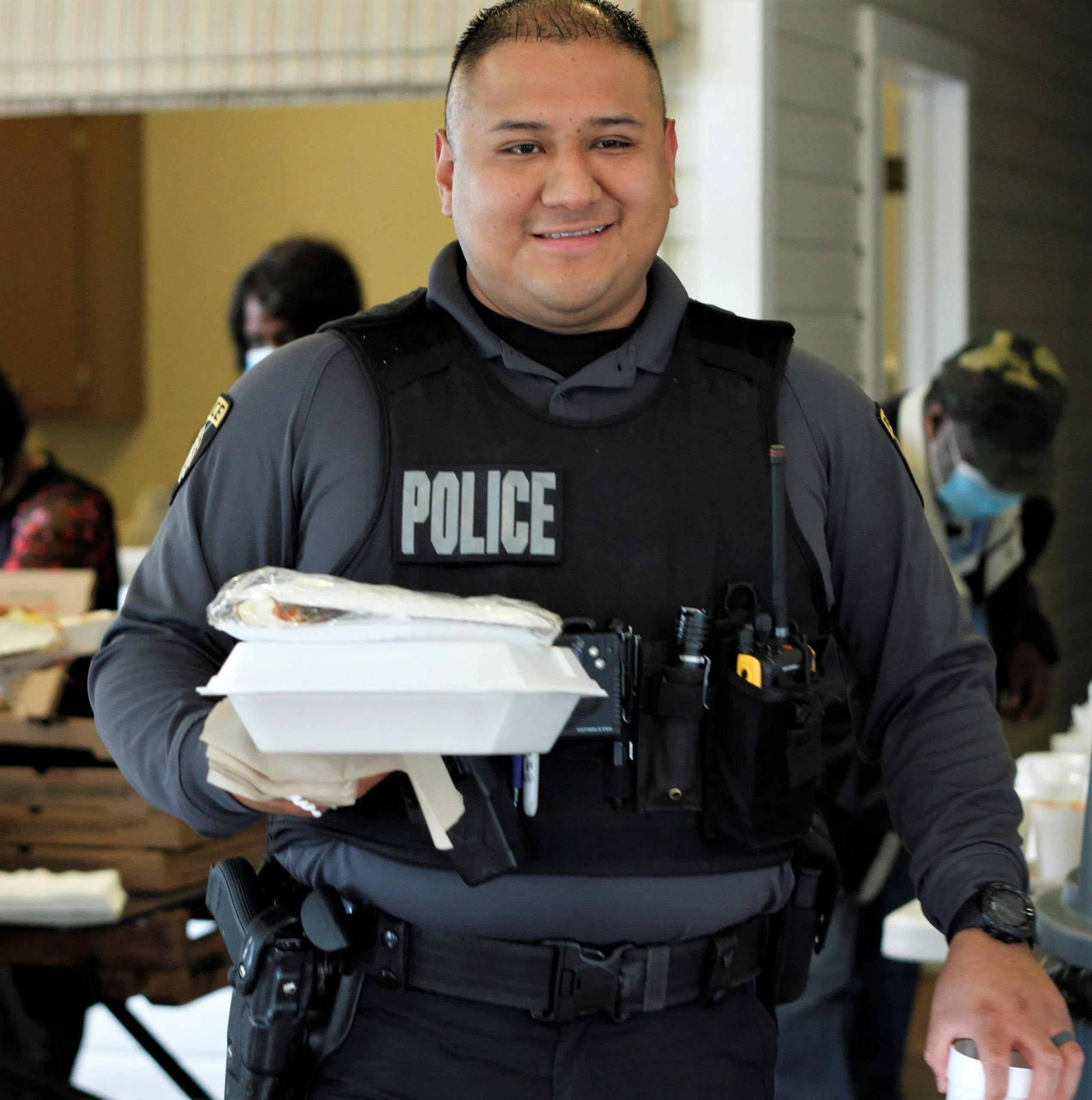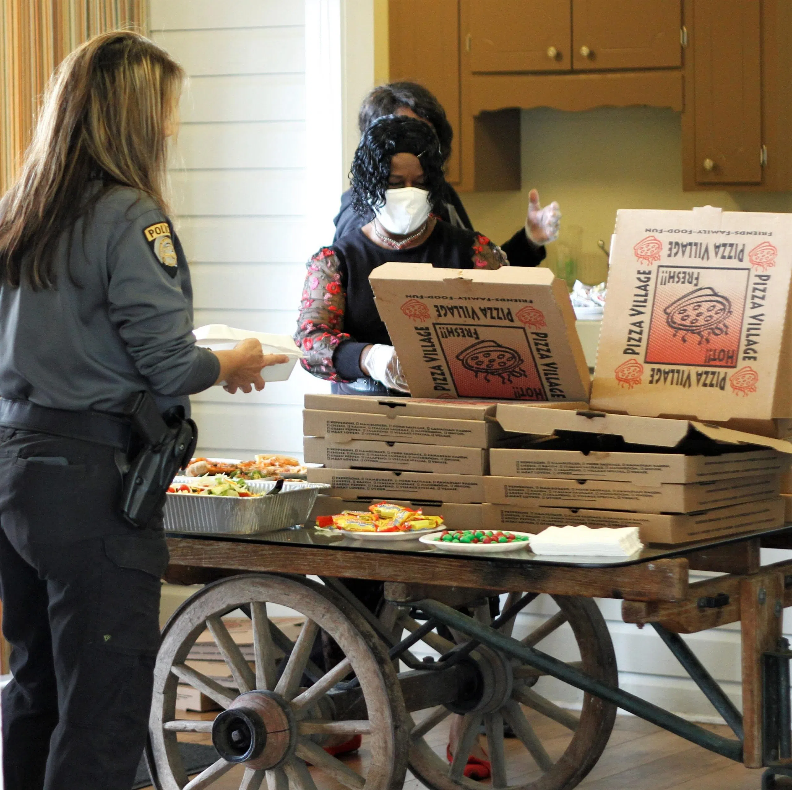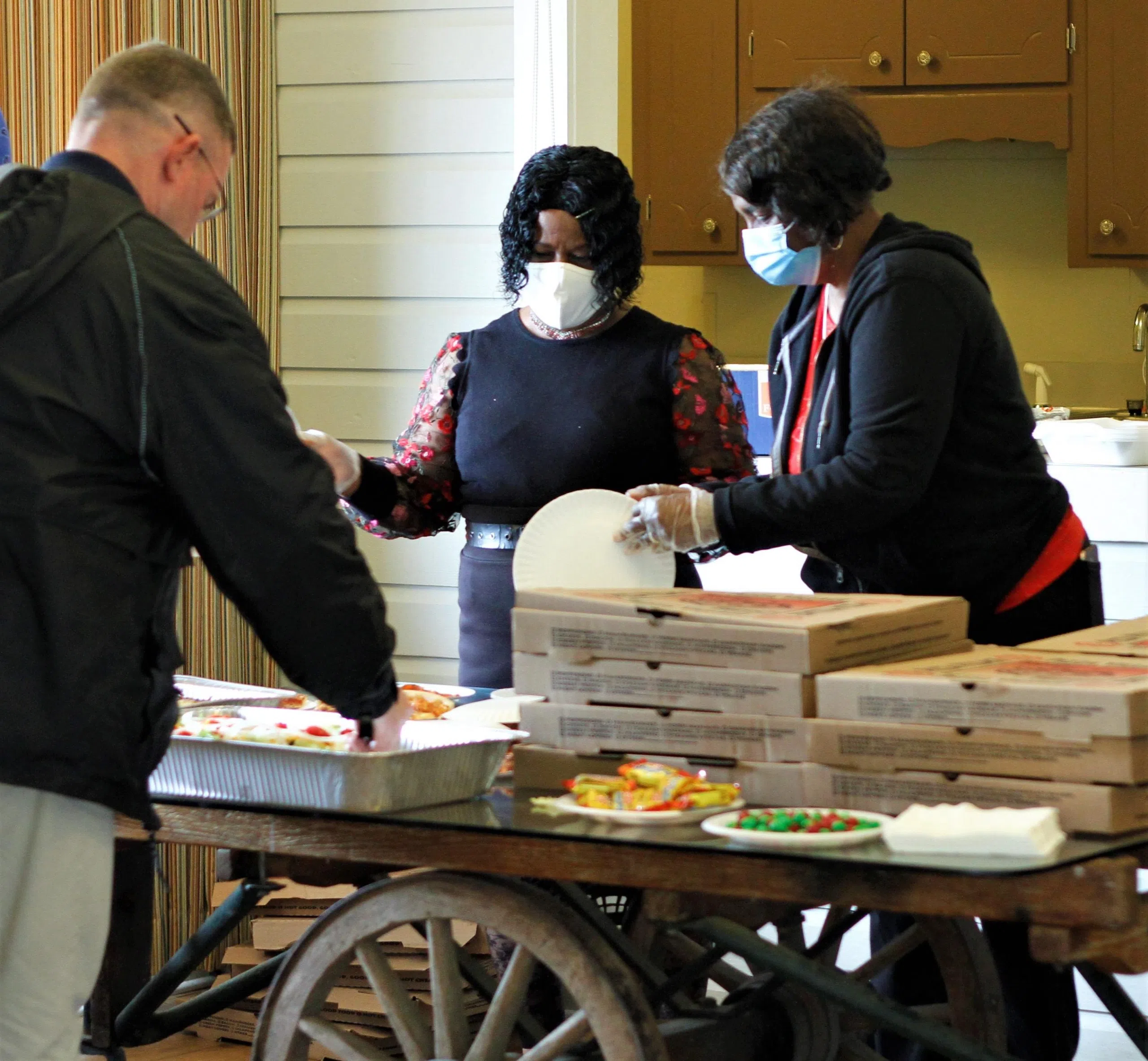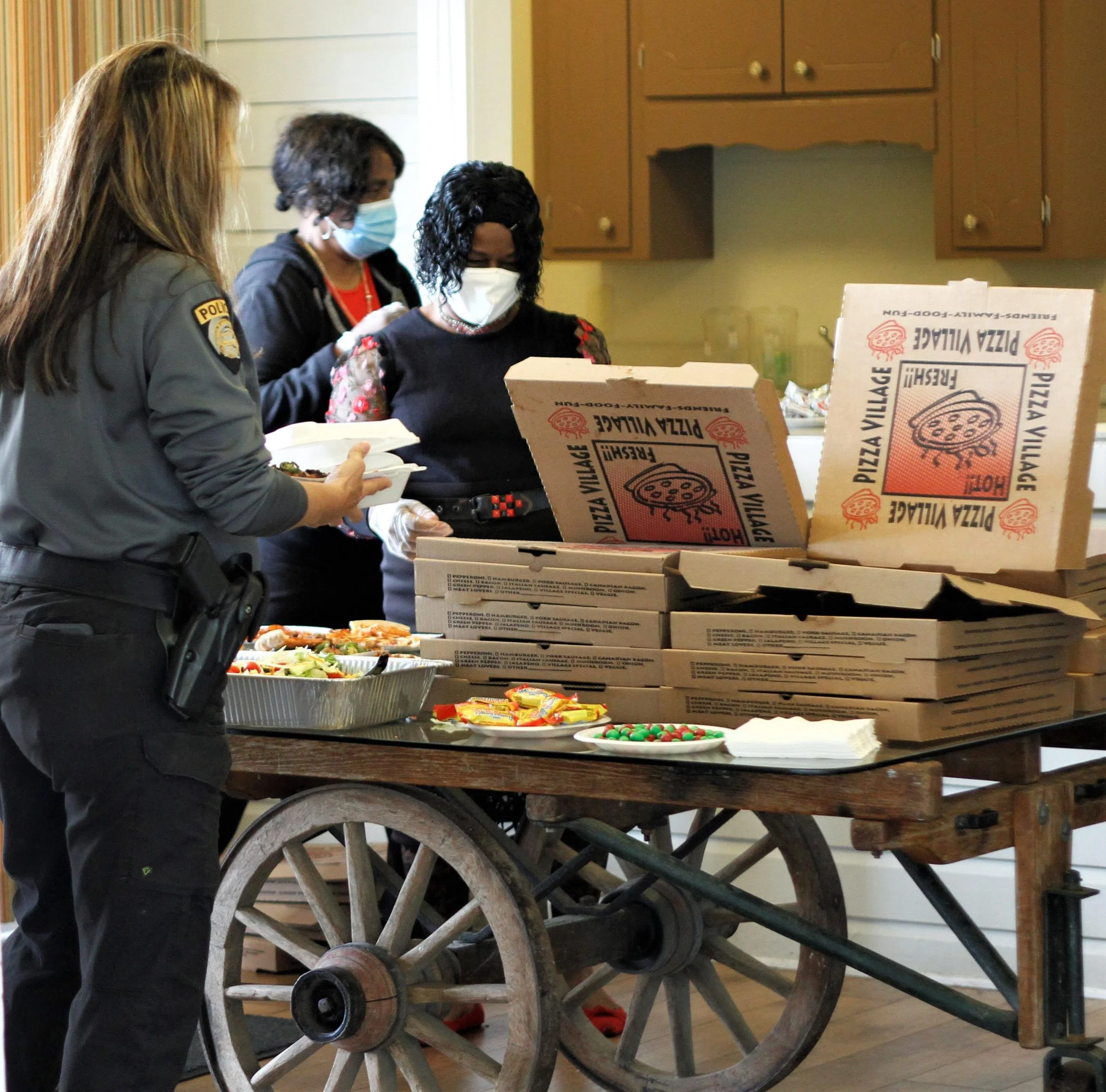 Mount Olive Town Commissioner Vicky Darden and other officials took time out on Thursday to serve up lunch to all town employees. The meal was provided by the Pizza Village of Mount Olive. The lunch was served at the Old Train Depot to thank the town employees for their hard work and and dedication to keeping the town safe.