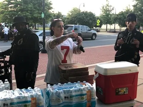 Marks says an anonymous donor brought 50 pizzas to Monday’s event, while others donated water and other supplies for the march.
