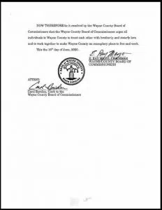 Mayo goes on to say “We want to thank and acknowledge the tireless efforts of the men and women in Wayne County Law Enforcement and our citizens who have effectively communicated and preserved the peace throughout the recent events.”
