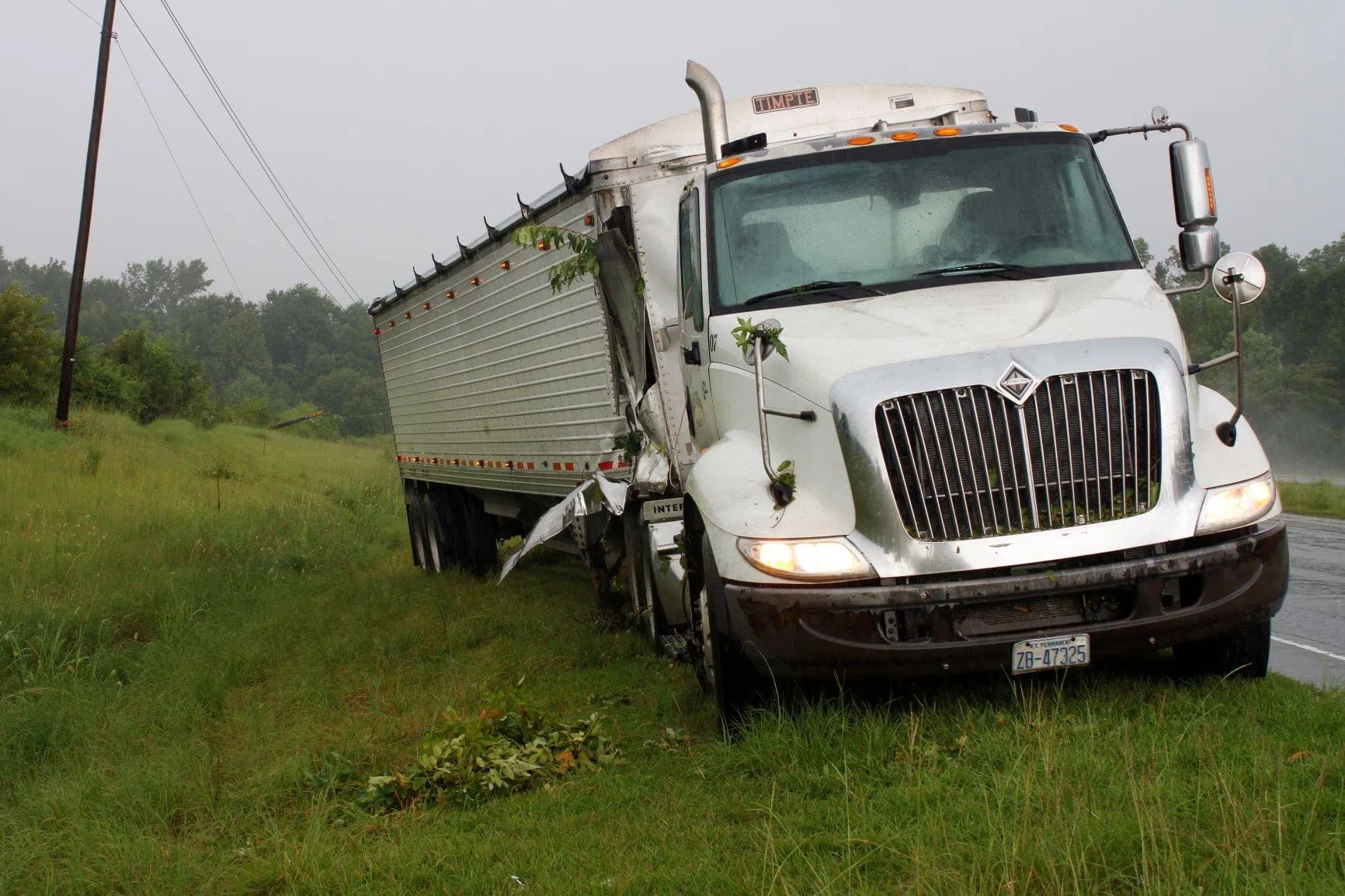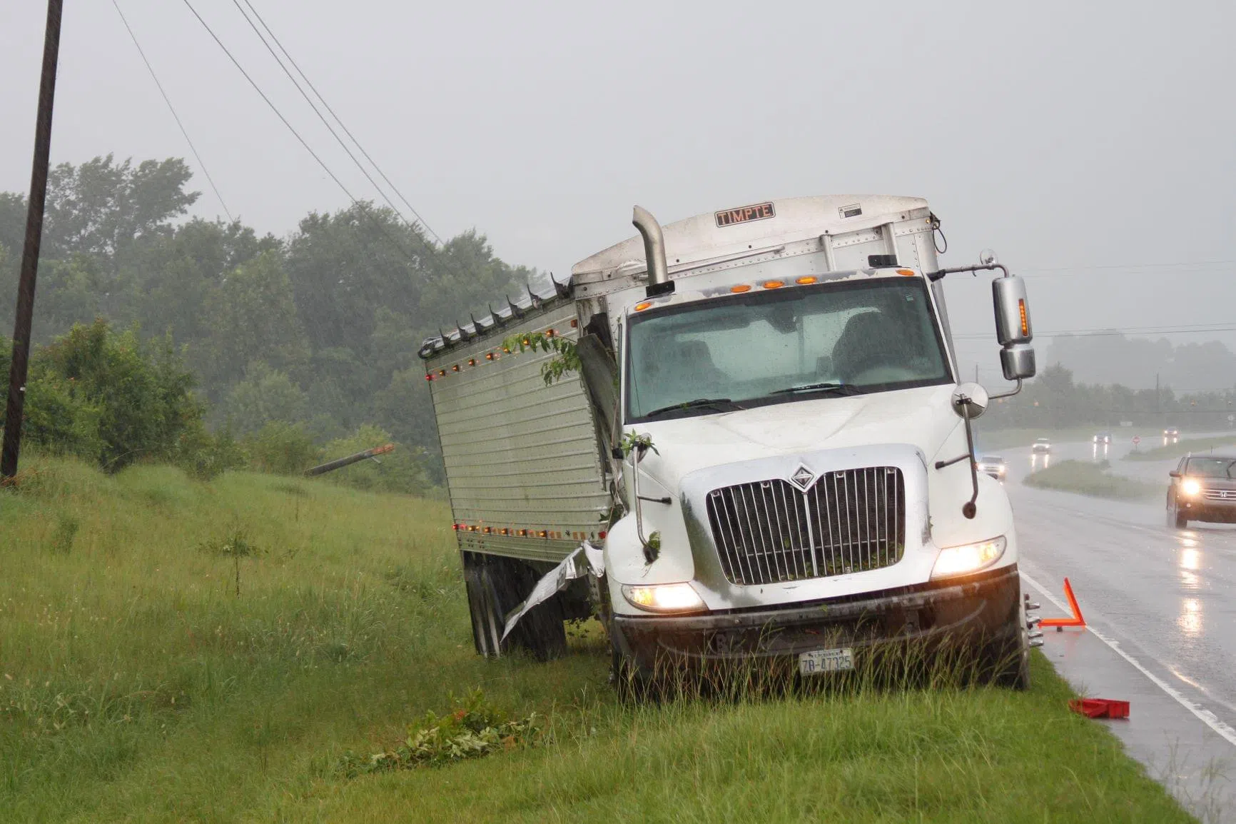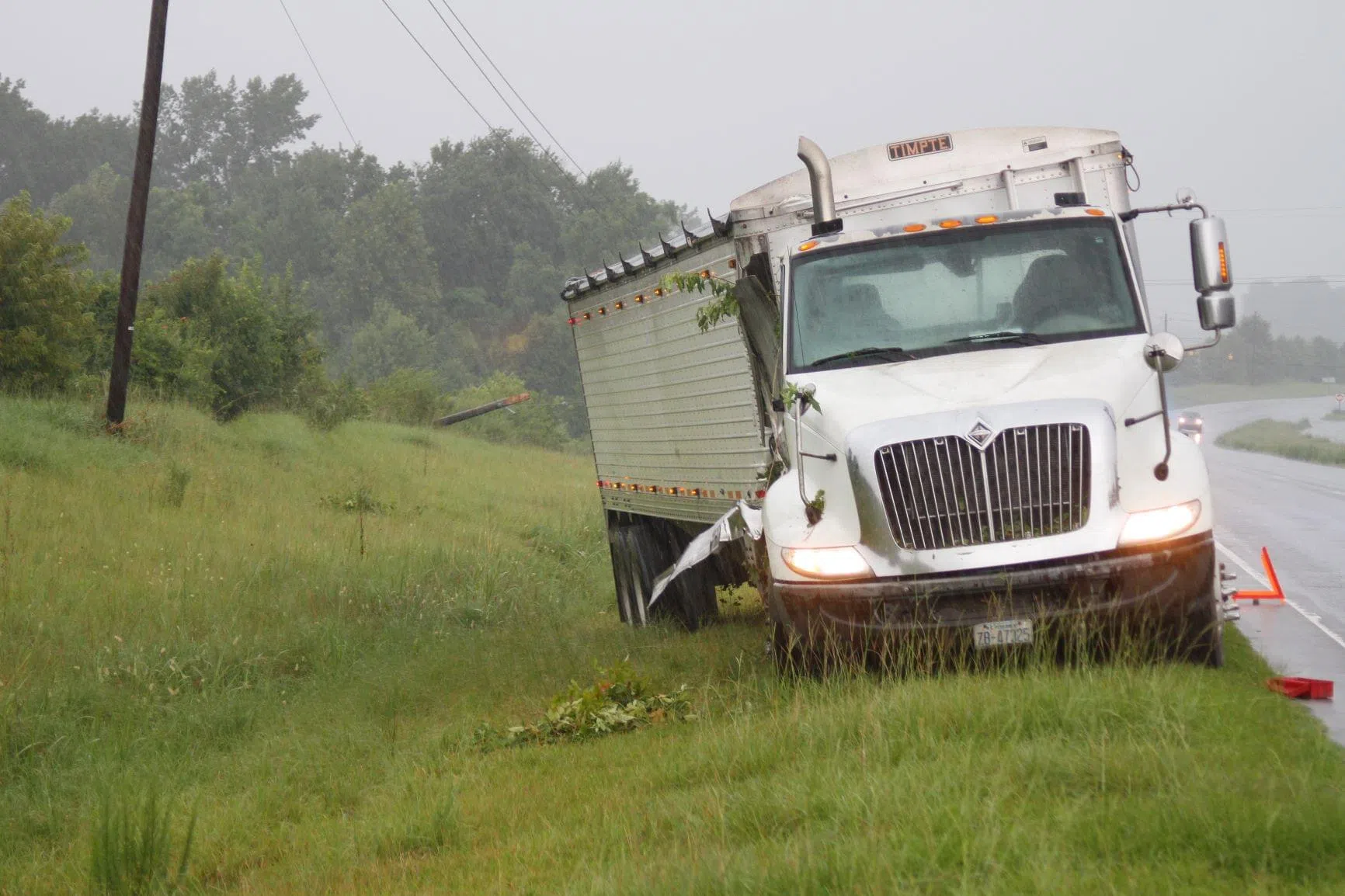 Mount Olive Fire Department and EMS were dispatched to the scene of this 18-wheeler accident late Saturday afternoon on U.S. 117 just past Old Smith Chapel Road in the southbound lanes. Luckily, there wasn’t any other vehicle involved. The semi was heading south when the driver ran off the right side of the road. The vehicle went down the embankment, slammed into a light pole and then finally came to a stop on the shoulder of the highway. The accident is under investigation by the State Highway Patrol.