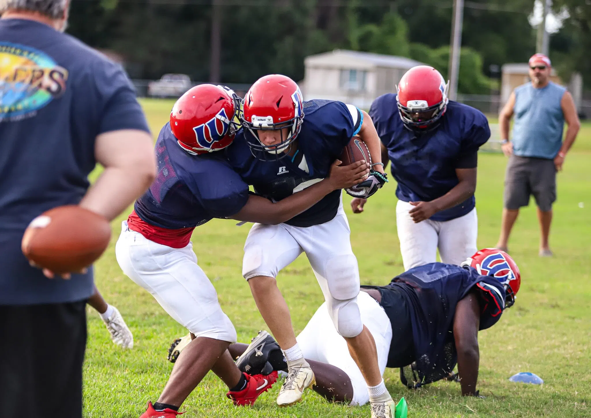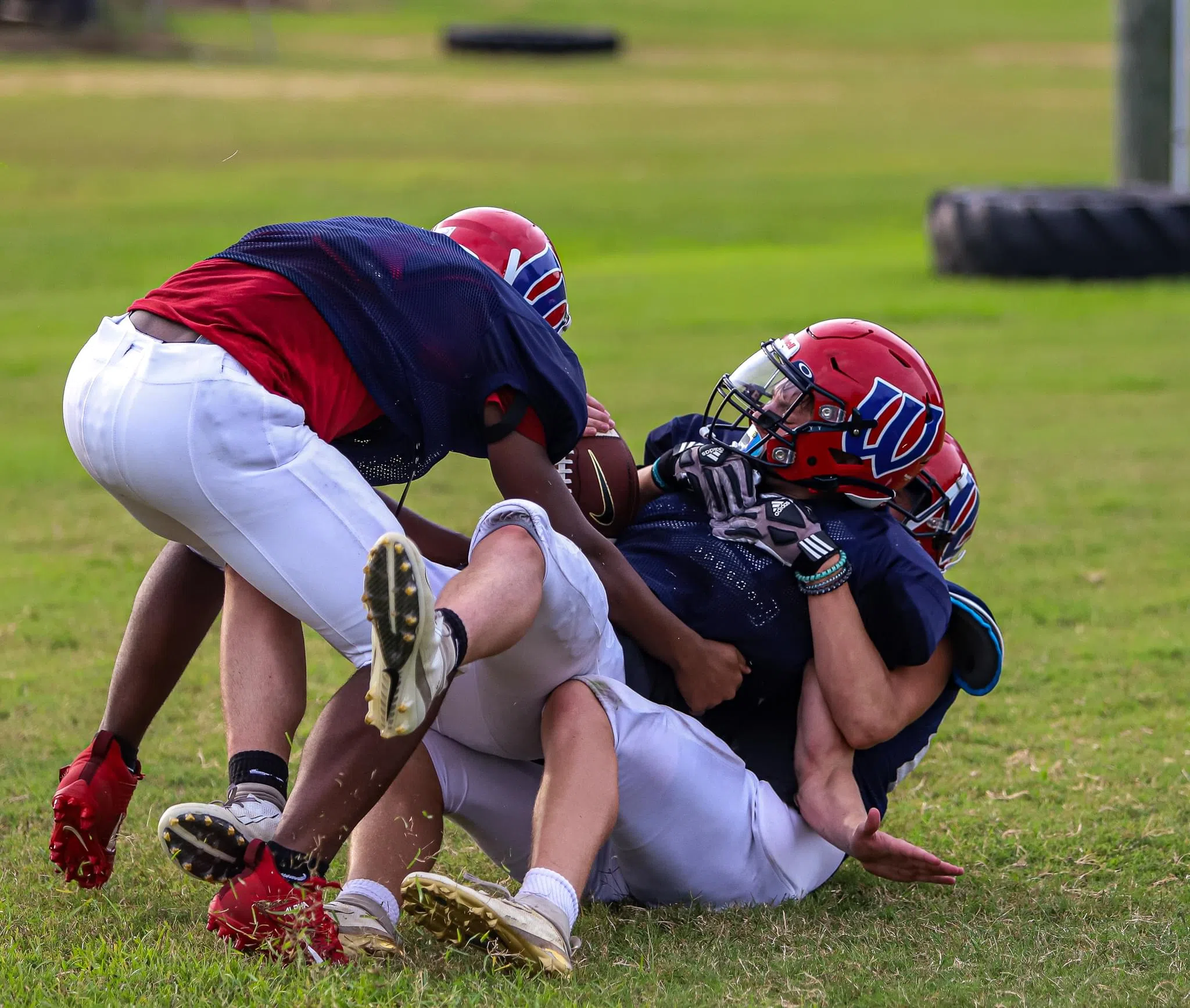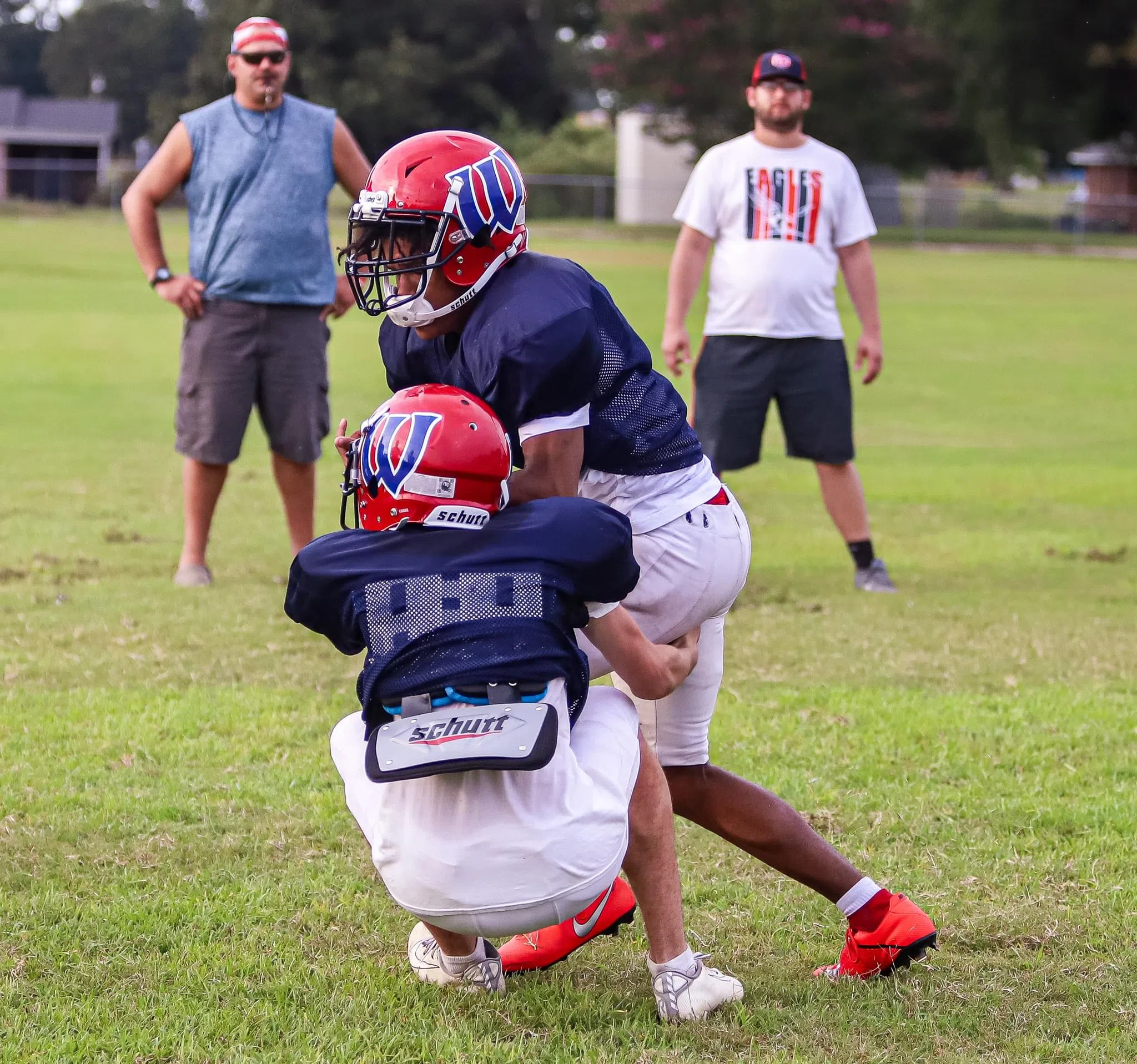 The Wayne Christian football team took to the field at 5 p.m. and went through two hours of practice, including some individual drills and team defensive work.