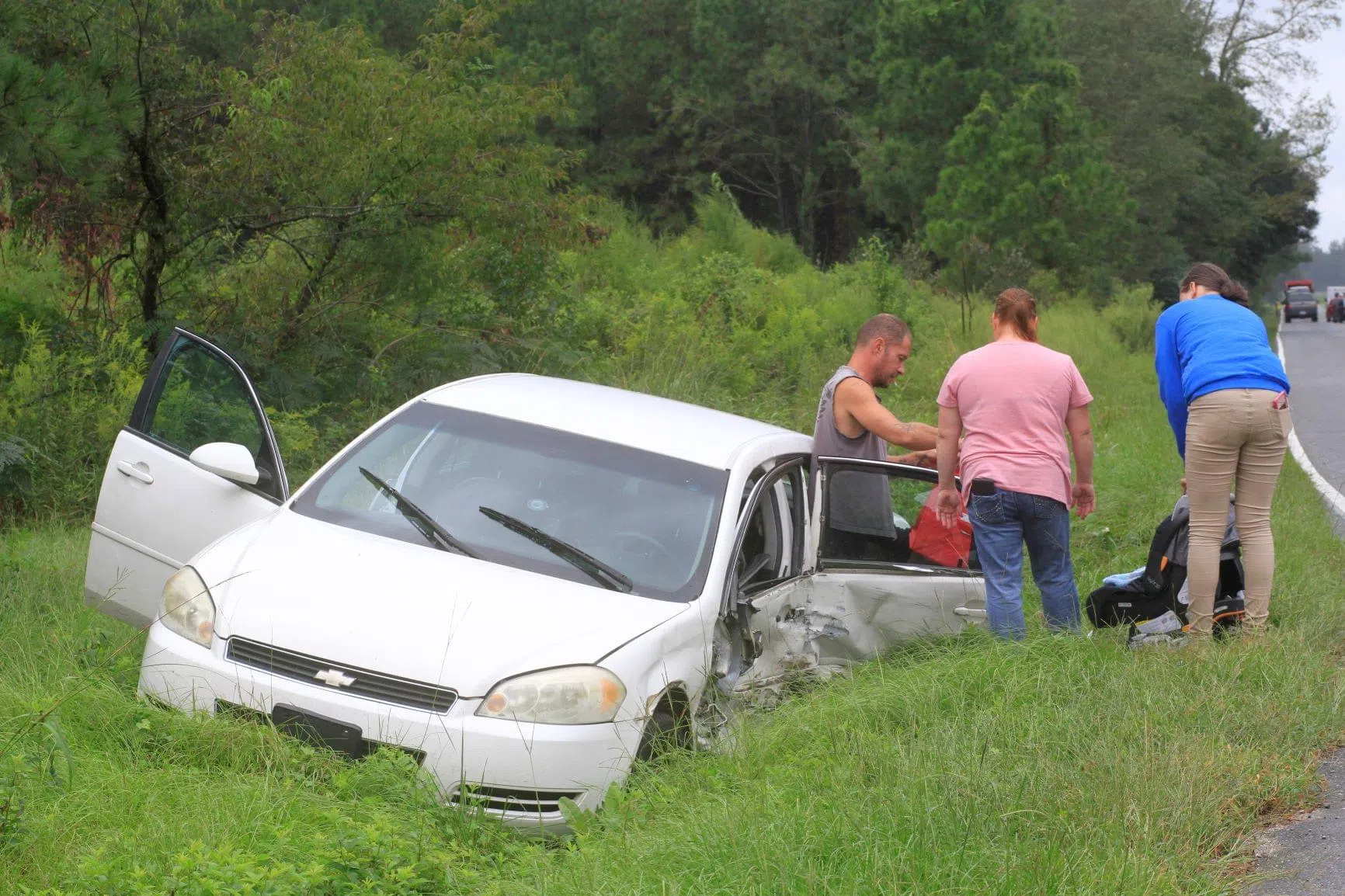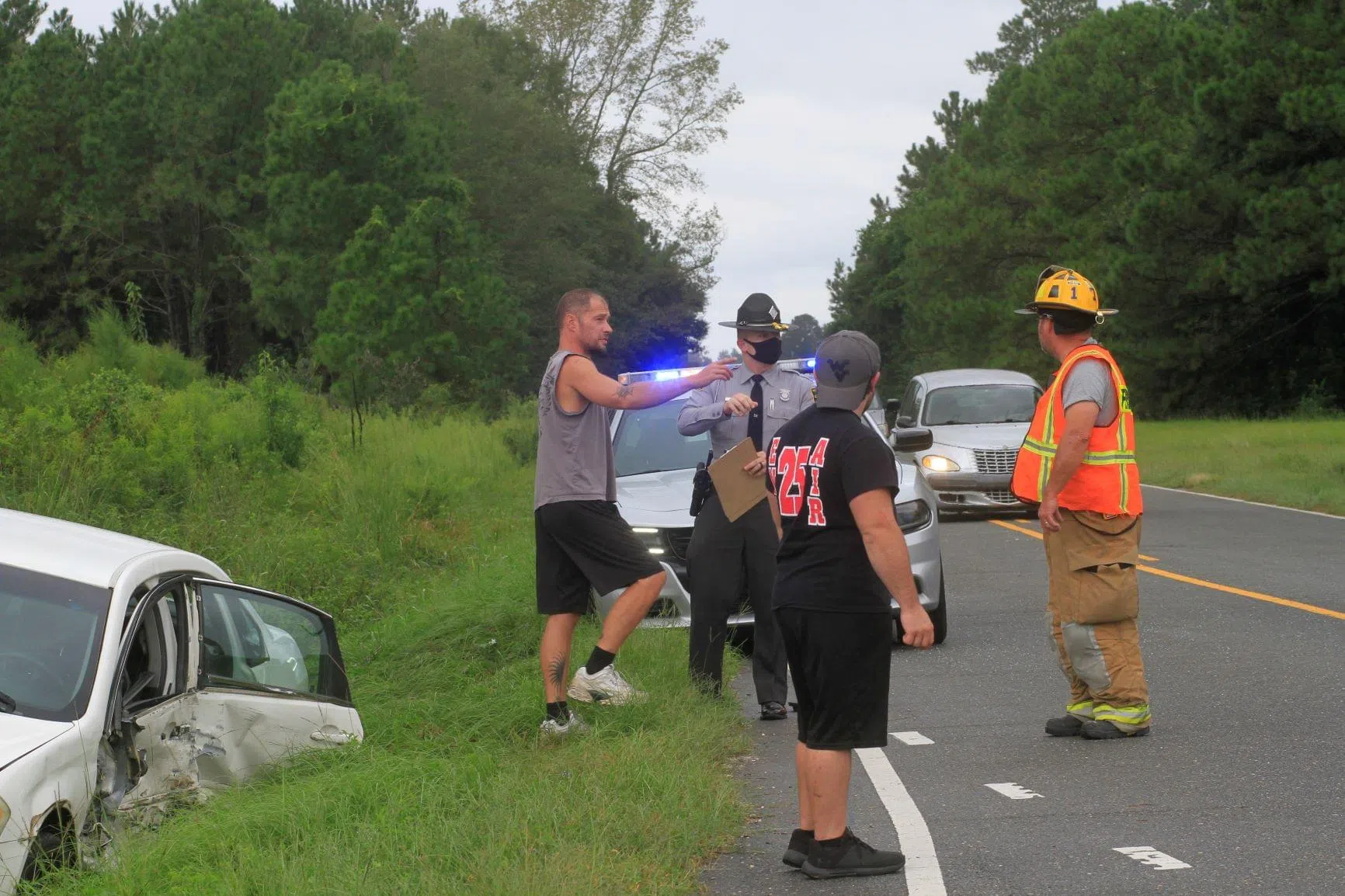 Friday afternoon, the Arrington Fire Department and Wayne County EMS were dispatched to the scene of a two vehicle accident on Arrington Bridge Road at the intersection of Casey Sawmill Road. Two vehicles sideswiped each other forcing this vehicle off the road and into a ditch while the second vehicle traveled about a quarter of a mile before coming to a stop on the shoulder of the road. Firefighters set up traffic control through the scene while waiting for law enforcement to arrive. The accident is under an investigation by the State Highway Patrol. No information on the patients was available at the scene.