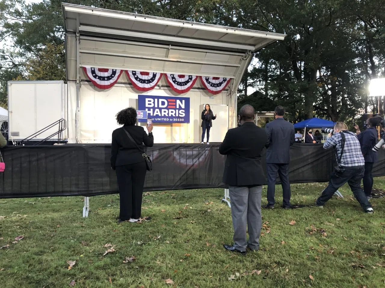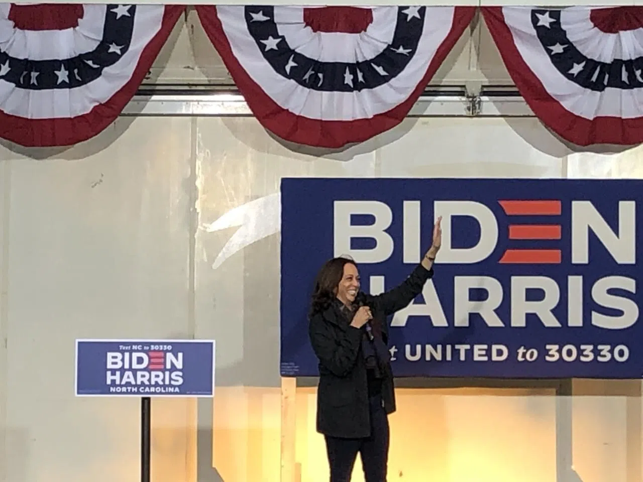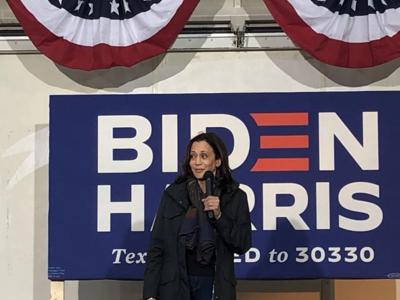 Following introductions from local Democrats seeking election or reelection, Harris spoke to the crowd for approximately 20 minutes before heading to her next campaign event in Fayetteville.