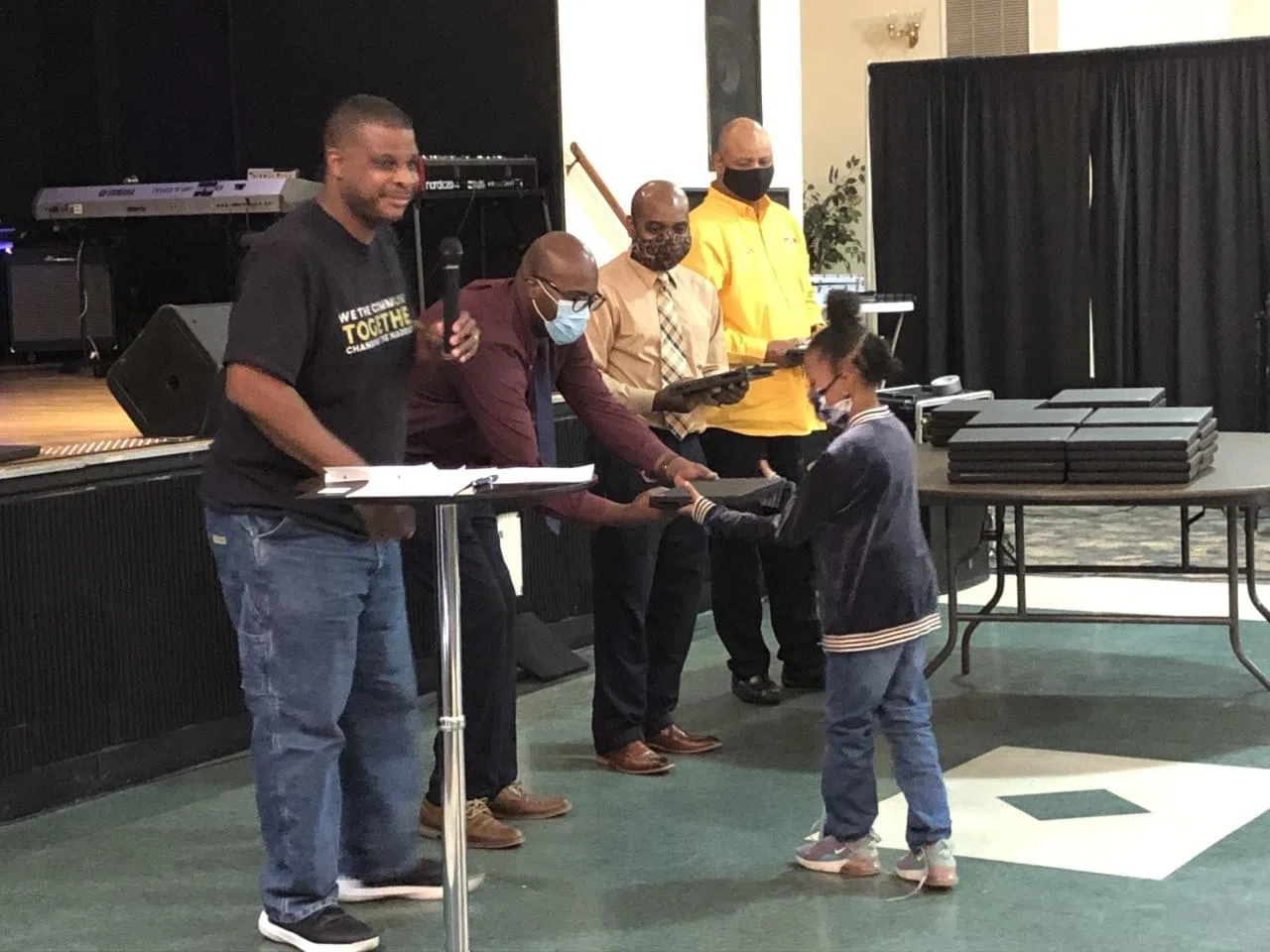 Operation Unite Goldsboro, Southern Bank of Goldsboro, Kramden Institute of Durham, and the Dillard Goldsboro Alumni and Friends, Inc., Triangle Chapter all teamed together to present the 50 laptops to the students.