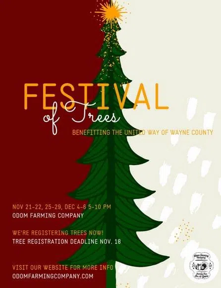 This is the final weekend of the Festival of Trees at the Odom Farming Company. The event benefits the United Way of Wayne County. The farm is decorated for Christmas and real Christmas trees decorated by local businesses, community groups and individual families are set up in the orchard. Families can come, visit the farm animals, take a hayride to the tree orchard, and enjoy the beauty of Christmas. Hours are from 5 – 10 PM this Friday, Saturday and Sunday, (Dec. 4 – 6). Admission is $8. Ticket information is available online at odomfarmingcompany.com.