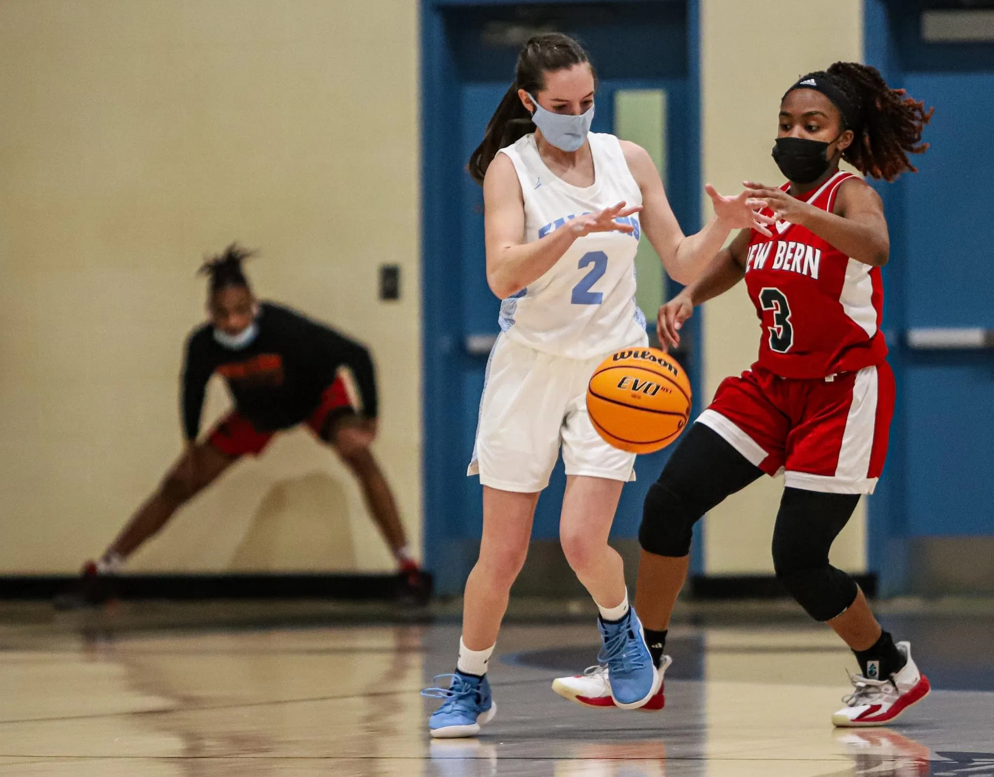 “New Bern’s defense seemed to give a little bit of work, and we had to overcome it,” Pate said. “To the girls’ credit, they overcame bad coaching because I had a different mixture on the floor than what they’re accustomed to, so sometimes we had two people going to the same spot, and that was my fault.