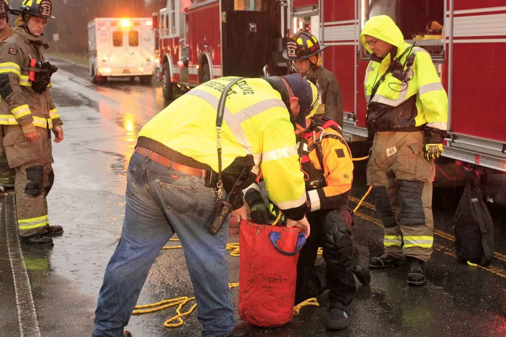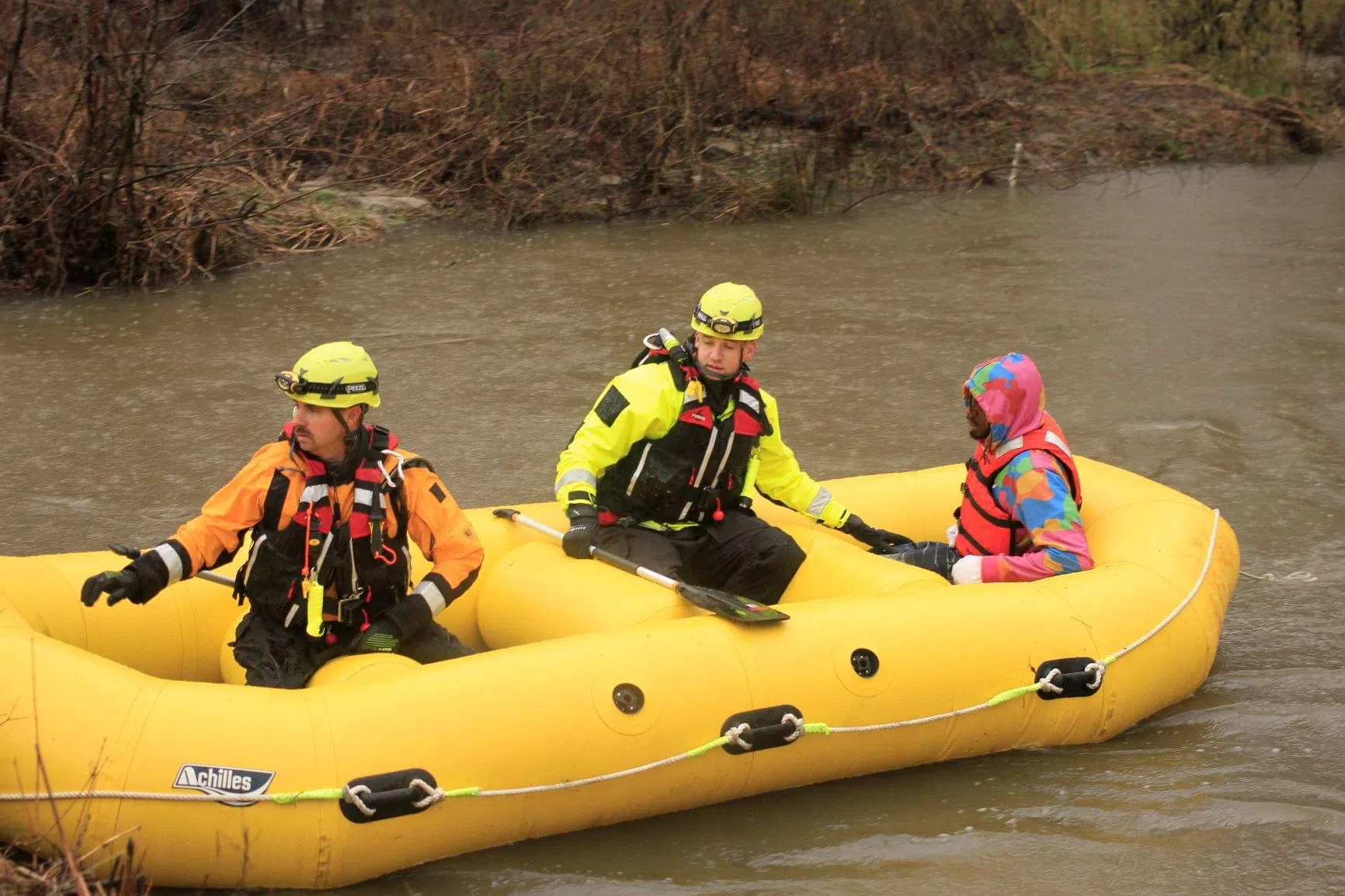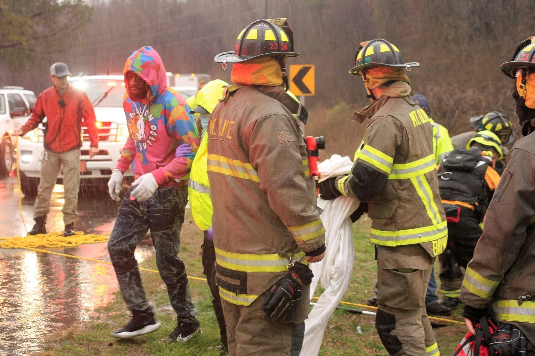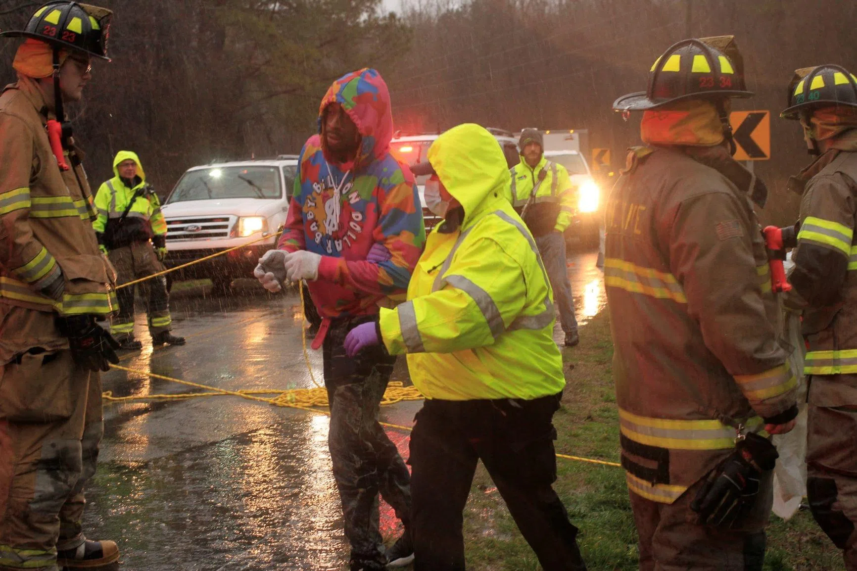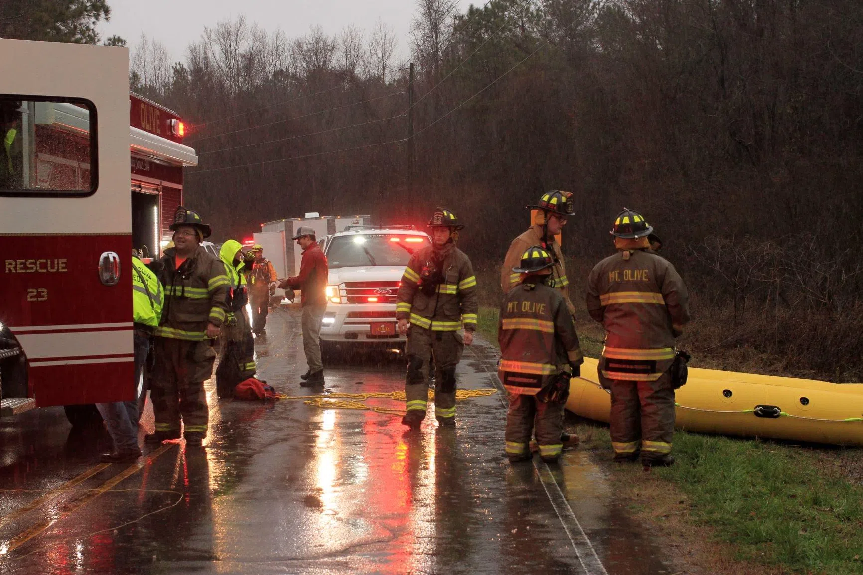 Emergency responders had to pull a vehicle from a creek near the Wayne-Duplin County line Friday morning. The car had run off Kelly Springs Road and was completely submerged by the time rescue crews arrived. The driver managed to get out of the vehicle and was found standing on a small island in the middle of the creek. The Arr-Mac Water Rescue Team responded and launched a raft to retrieve the driver. Kelly Springs Road had to be shut down while the rescue took place. The accident is being investigated by the State Highway Patrol. The driver is expected to be charged with No Driver’s License and Safe Movement Violation.
