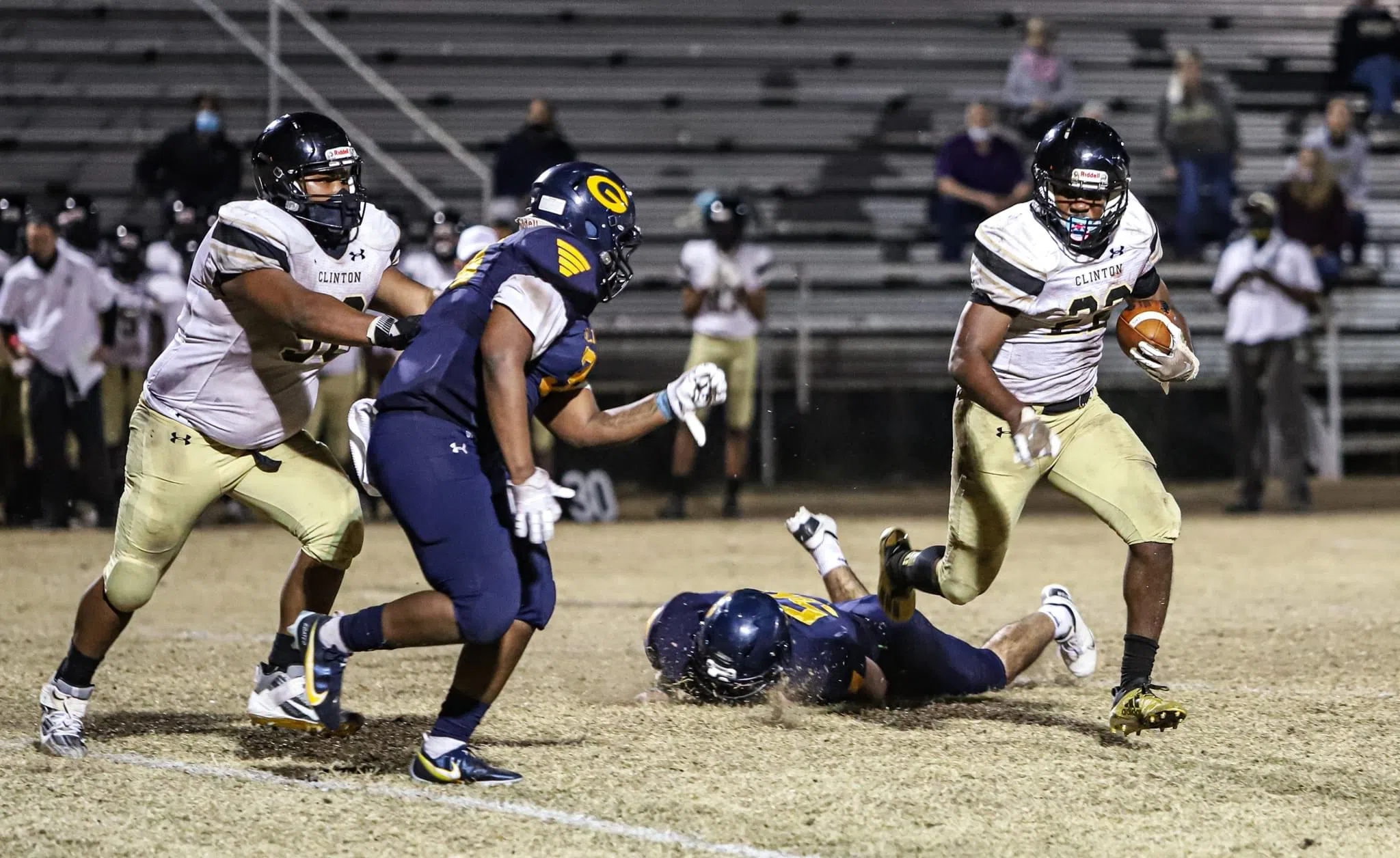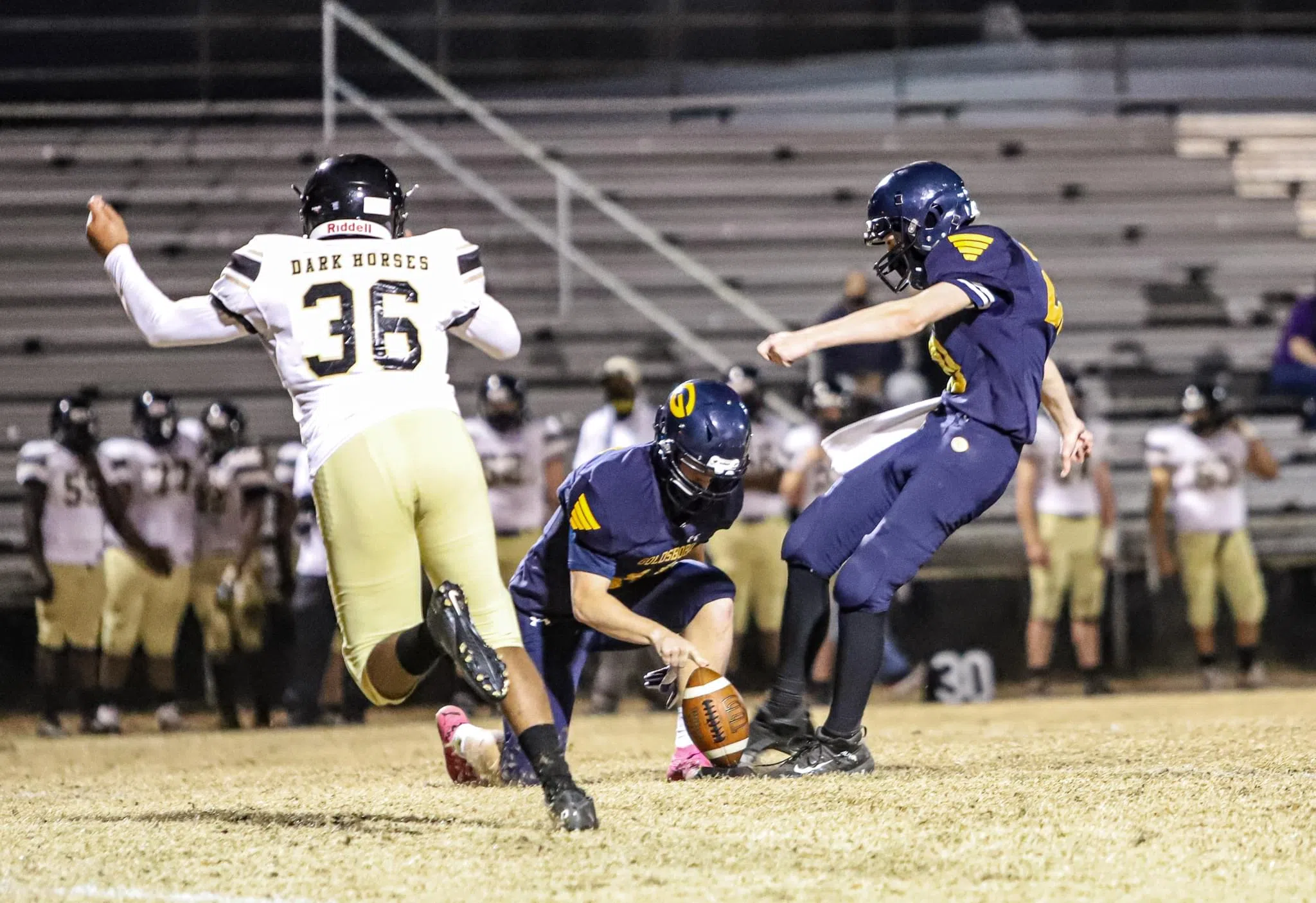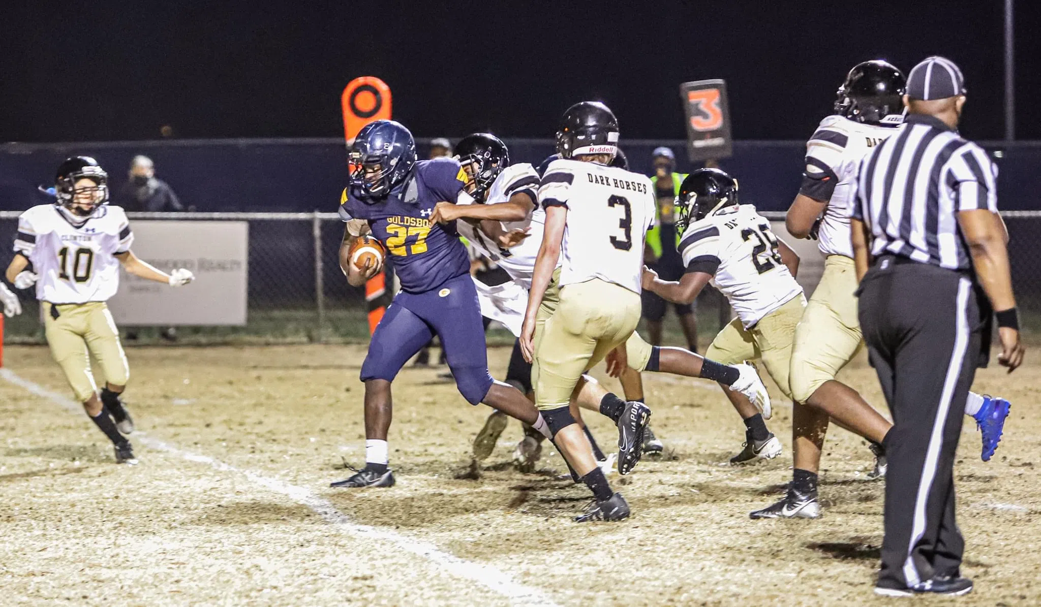 The Cougars held off the Dark Horses for most of the second quarter, but after Clinton blocked a punt, the Dark Horses scored a touchdown on the ensuing possession and led 21-0 at halftime.