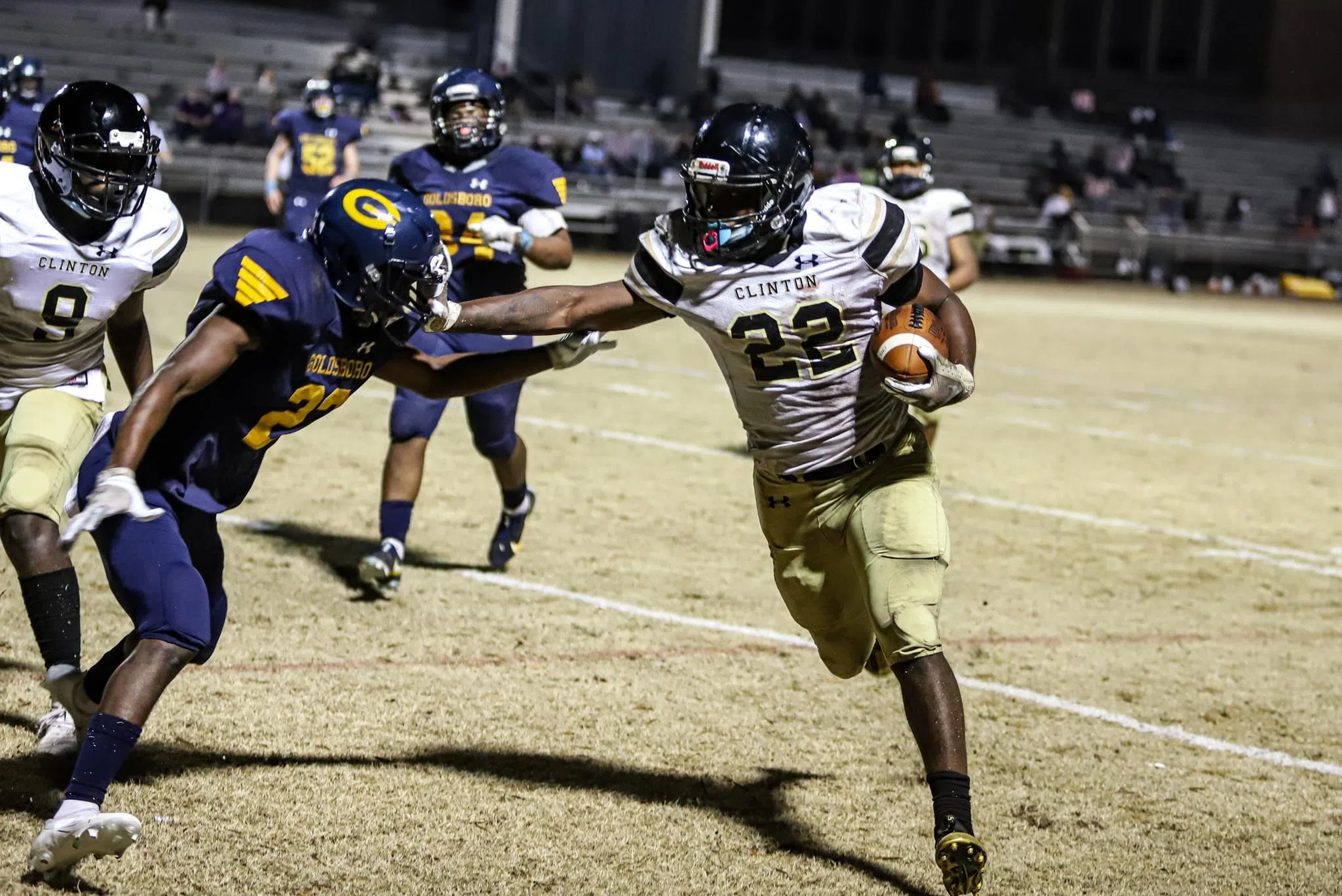 Goldsboro was forced to punt on its possession, and Clinton took advantage by going on a 10-play 52-yard drive that was capped off with a nine-yard touchdown run from Smith with 1:28 left in the first quarter.