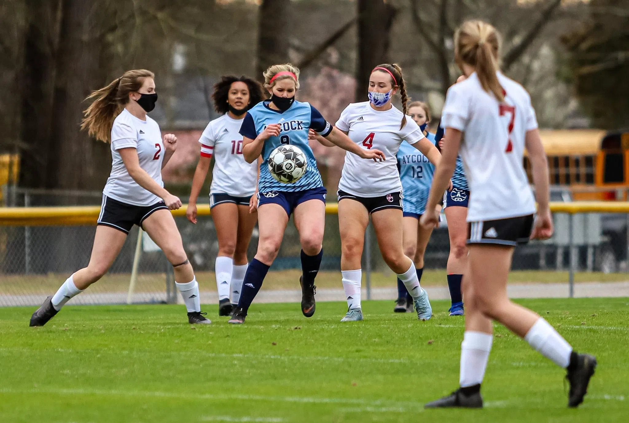 Down 1-0 late in the first half, C.B. Aycock tied the game 1-1 when off a corner kick from Haley Martin, Madison Morgan scored a goal.