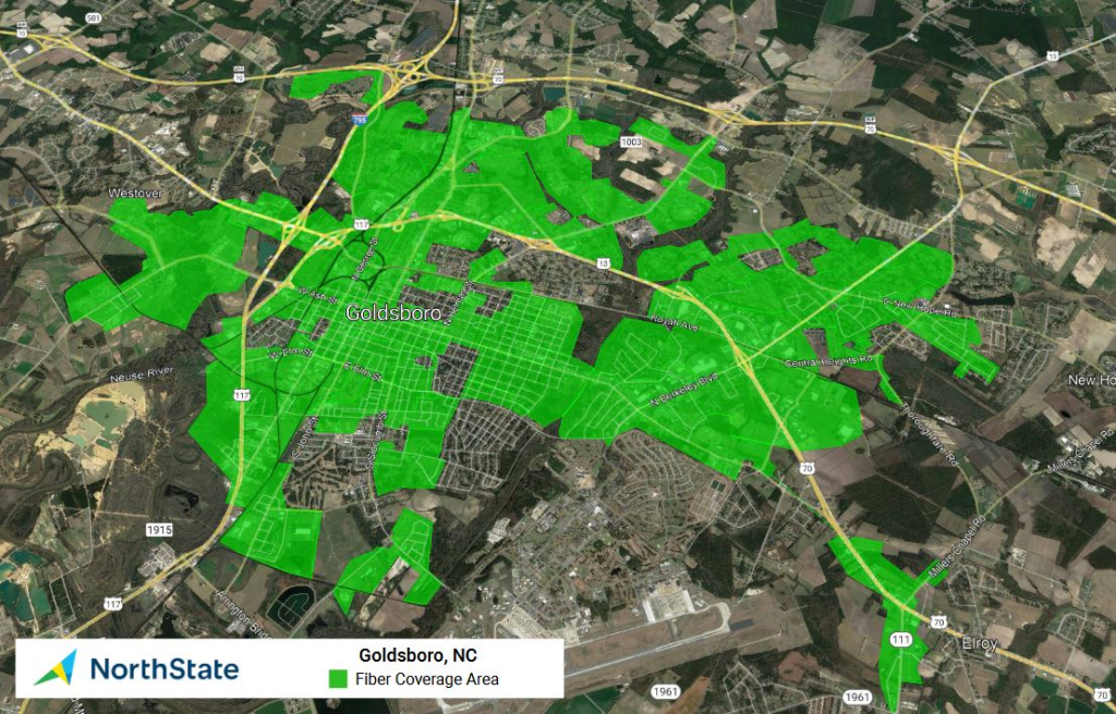 NorthState’s fiber-optic network will be available to approximately 39,000 addresses in Alamance County and neighboring Guilford and Orange Counties including the towns of Burlington, Gibsonville, Elon, Whitsett and Mebane as well as many surrounding communities. In Wayne County, the new fiber-optic network will cover the majority of Goldsboro – about 14,000 homes and businesses.