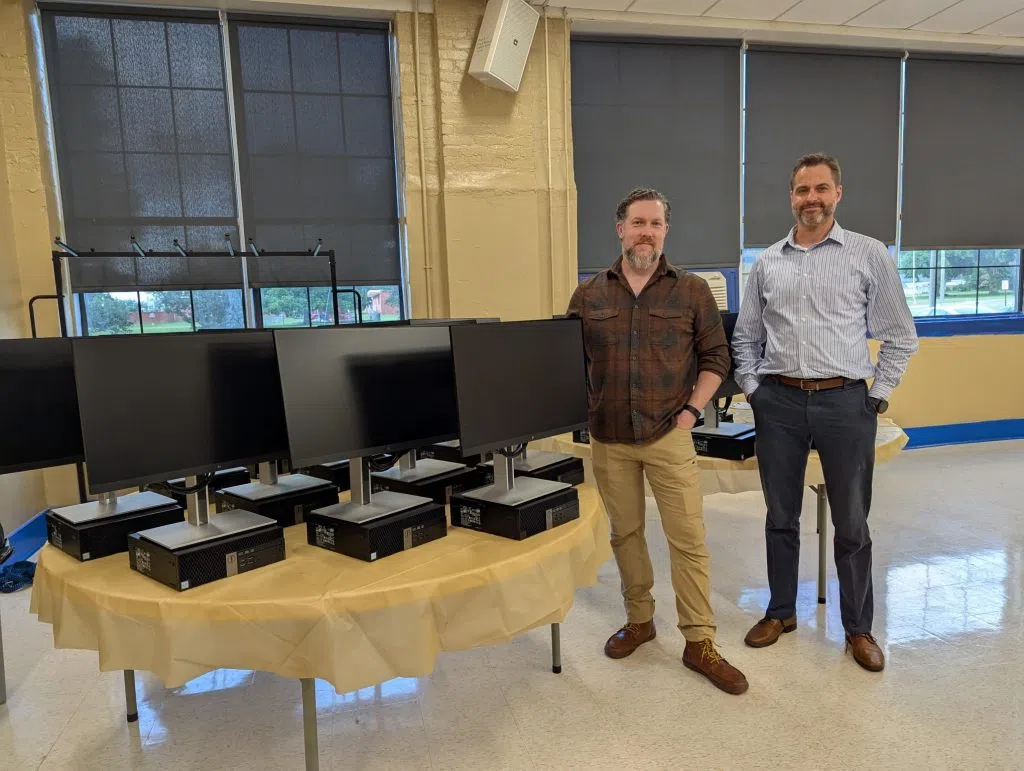 Co Principals Tasha Adams, and John Twitty were recognized and joined in receiving the donation alongside the students. The event concluded with the distribution of the students’ books, seeing them for the first time in person, book signing by dignitaries, and the children taking home their own computer desktop donated by Kramden Institute.