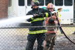 Firefighters deployed several hose lines from different directions, allowing crews to bring the fire under control quickly and prevent further spread. Officials confirmed no injuries occurred during the incident.