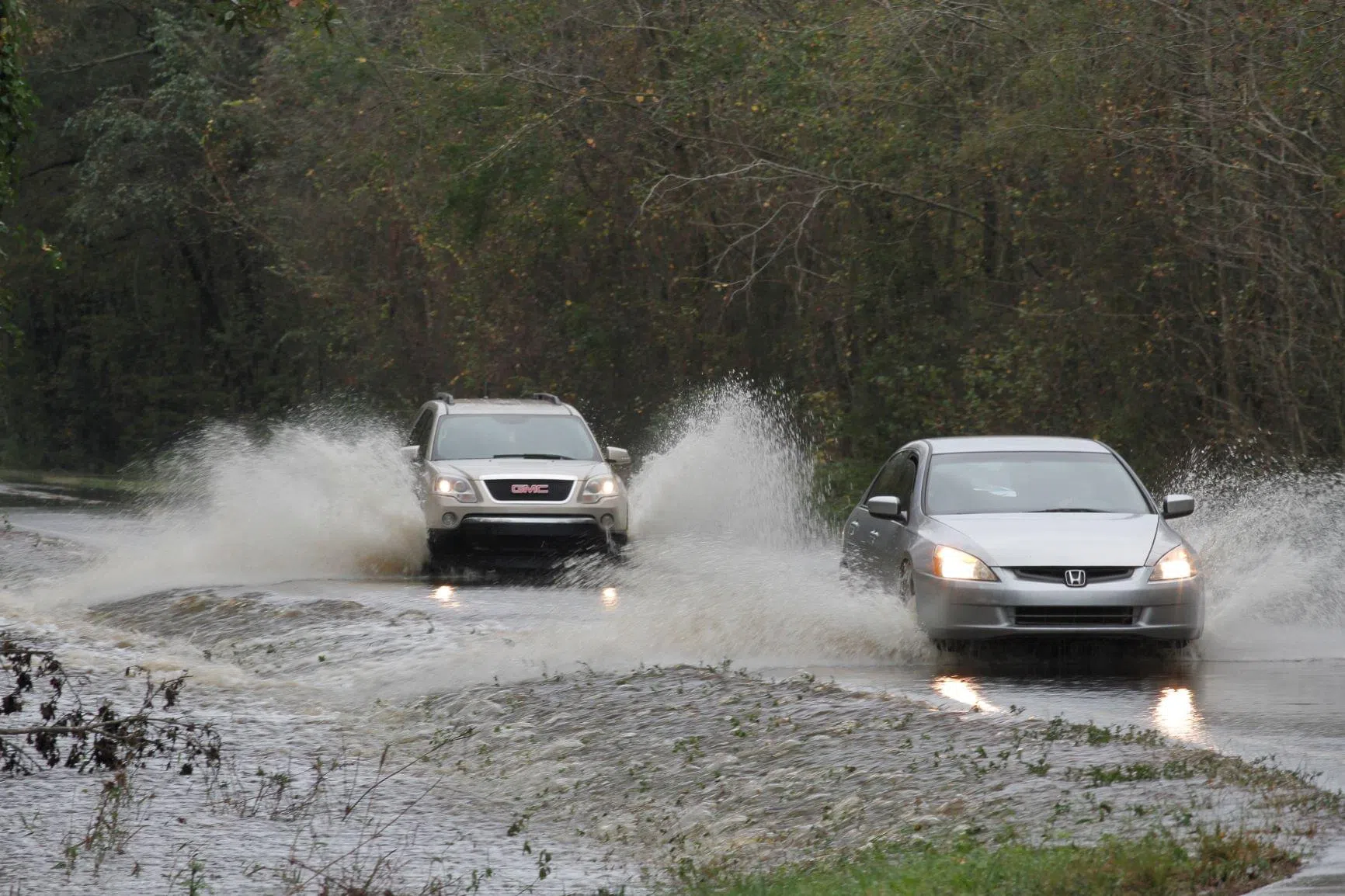 Drivers Tempt Fate On Water-Covered Roads (PHOTOS)
