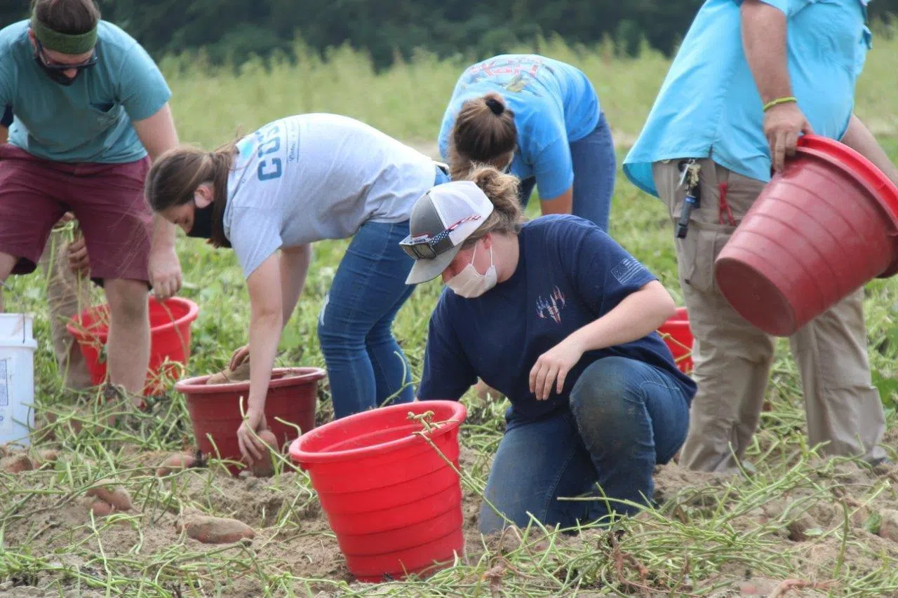 Students in the University of Mount Olive's School of Agricultural and Biological Sciences have been hard at work harvesting peanuts and sweet potatoes. They are currently selling these items on a fir...