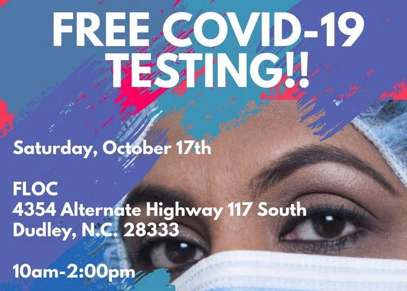 Free COVID-19 testing will be offered this weekend in Dudley. The testing will be offered from 10 AM - 2 PM on Saturday, October 17, at the Farm Labor Organizing Committee (FLOC), 4354 Highway 117 Alt...