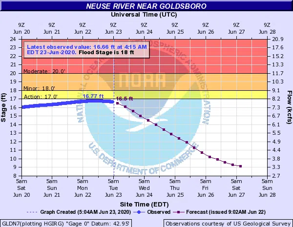 It appears the Neuse River near Goldsboro may not quite reach flood stage. Following heavy rains last week, the Neuse River has been rising quickly. However, the Tuesday morning forecast from the Nati...