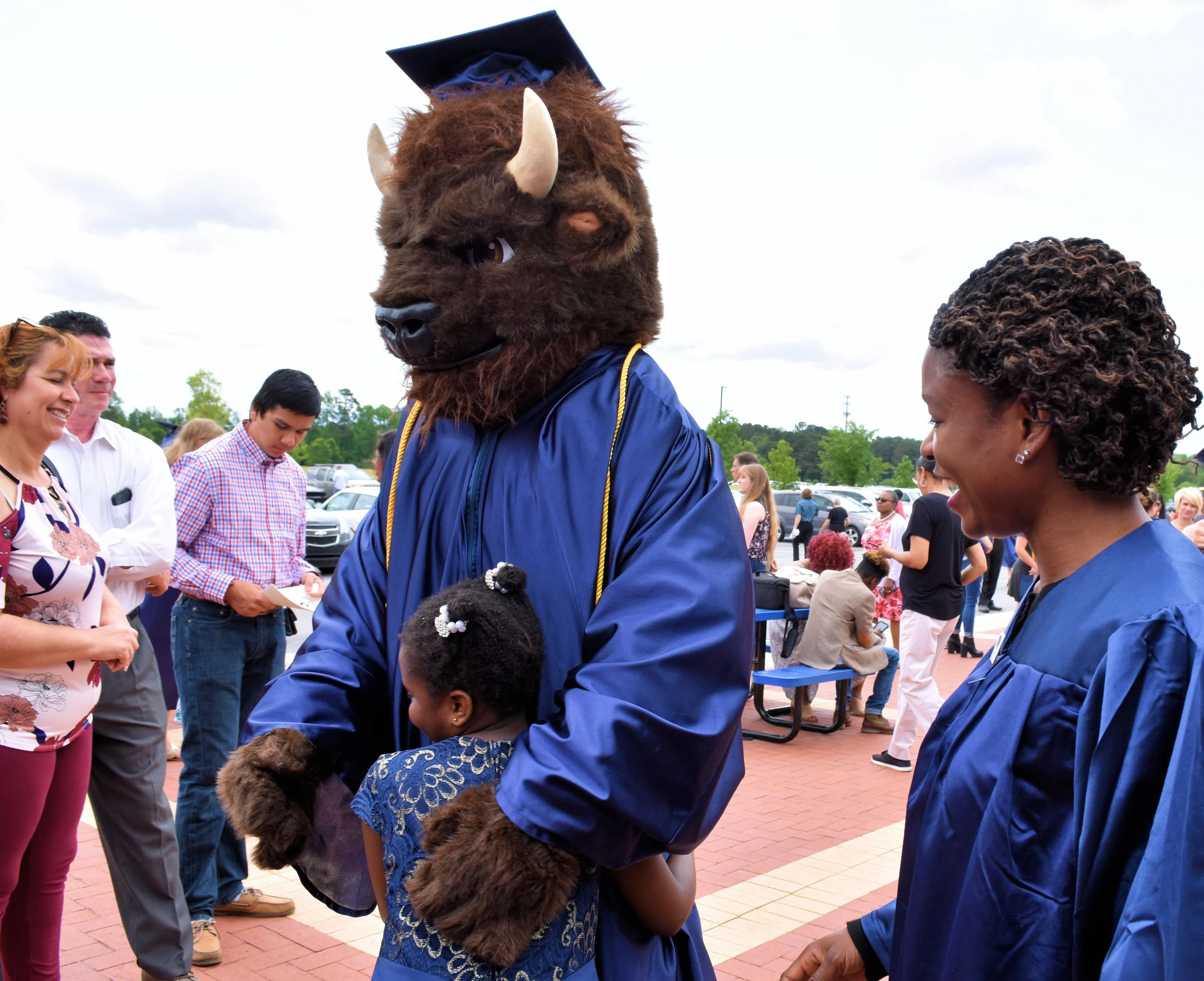 Hugging and posing with Billy Bison, a favorite activity for graduates, will not be an option during Wayne Community College's drive-through celebrations on May 12 and May 13. Next week's events are i...